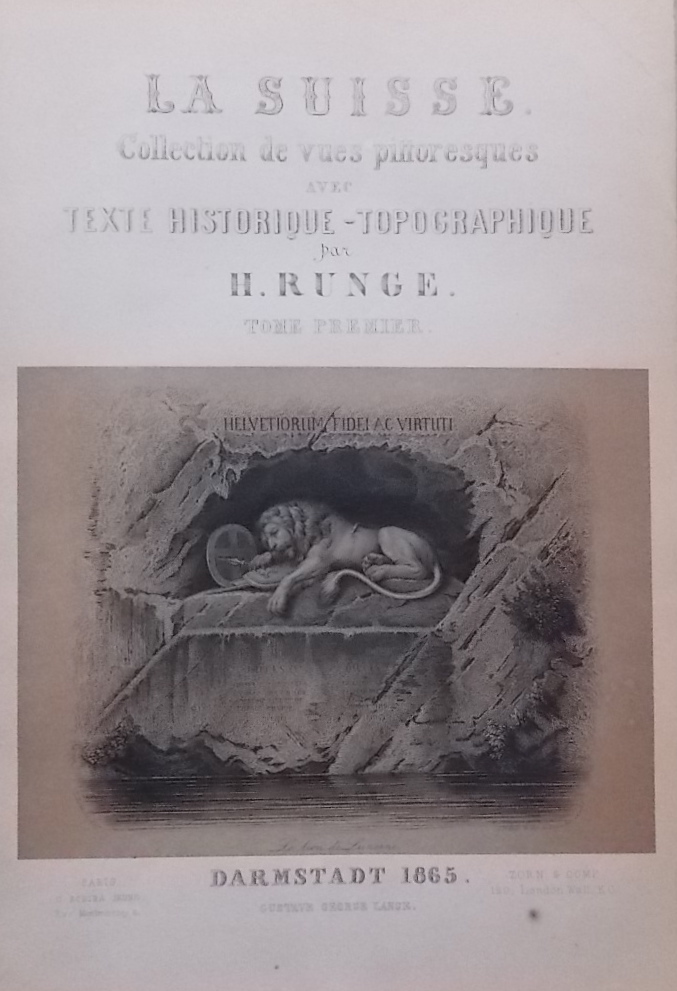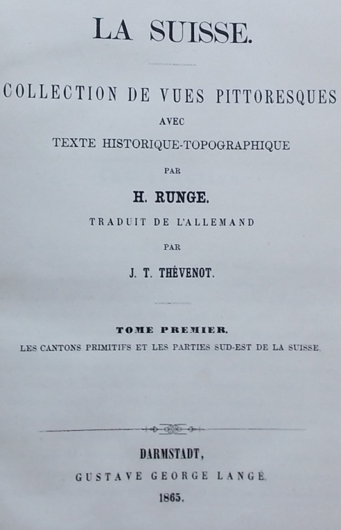 RUNGE (Heinrich) La Suisse. Collection de vues pittoresques avec texte historique-topographique. Darmstadt, Gustave George Langé, 1864-1866.