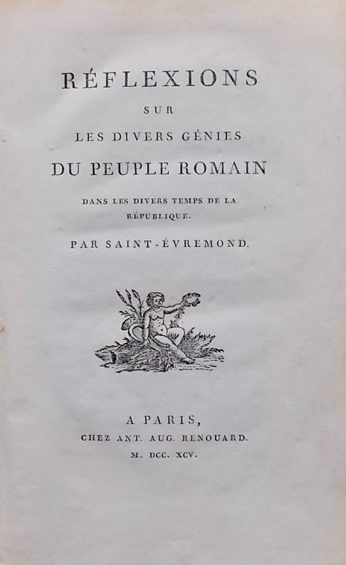 SAINT-EVREMOND Réflexions sur les Divers Génies du Peuple Romain dans les divers temps de la République. Paris, Renouard, 1795.