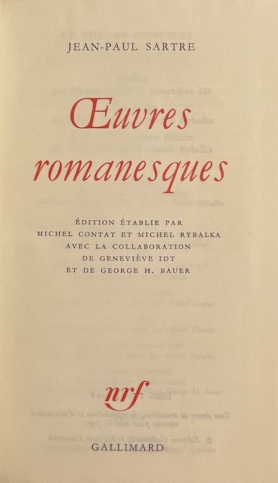 SARTRE (Jean-Paul) Oeuvres romanesques. Paris, Gallimard (coll. Bibliothèque de la Pléiade), 1982.