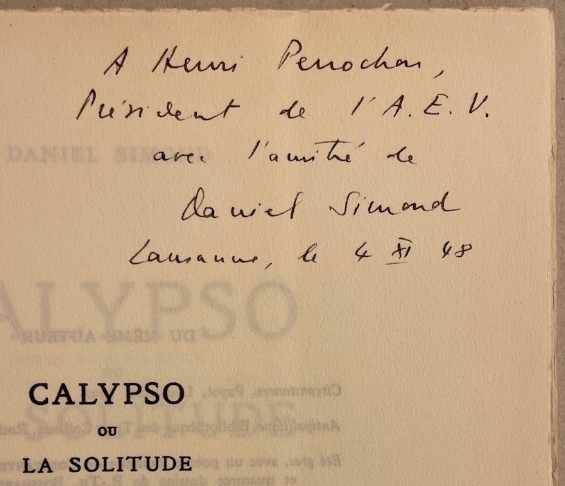 SIMOND (Daniel) Calypso ou la solitude. Drame. Lausanne, Editions des Terreaux, [1948].