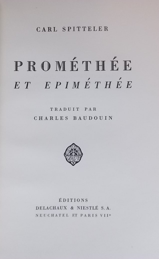 SPITTELER (Carl) Prométhée et Epiméthée. Neuchâtel, Delachaux & Niestlé, 1940.