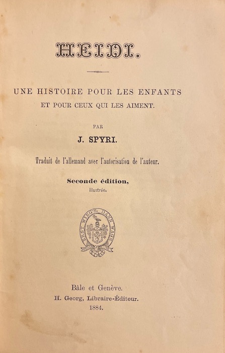 SPYRI (Johanna) Heidi. – Encore Heidi. (Une histoire pour les enfants et pour ceux qui les aiment). Bâle et Genève, H. Georg, 1882-1884.