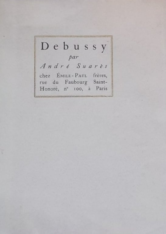 SUARES (André) Debussy. Paris, Emile-Paul frères, 1922.