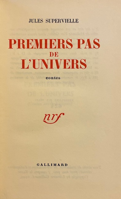 SUPERVIELLE (Jules) Premiers pas de l’univers. Contes mythologiques. Paris, Gallimard, 1950.