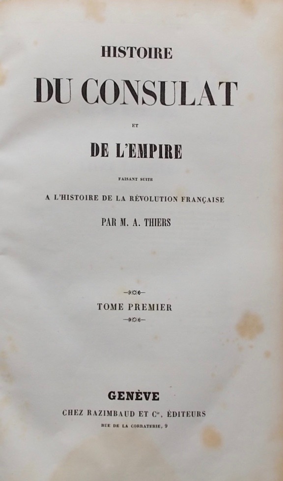 ![THIERS (Adolphe) Histoire du Consulat et de l'Empire. Genève, chez Razimbaud & Cie, [puis] Ch. Gruat, [1845]-1862. – Image 2](https://cabinetamateur.ch/wp-content/uploads/2025/11/36862_2.jpg)