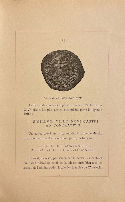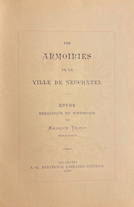 TRIPET (Maurice) Les armoiries de la Ville de Neuchâtel. Etude héraldique et historique. Neuchâtel, Berthoud, 1888.