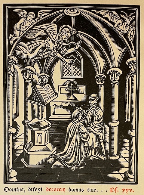 Nouvelle édition, illustrée d’un frontispice, de lettrines et de vignettes dessinés et gravés sur bois par Thiollière et imprimés en rouge et noir en caractères gothiques. Tirage limité à 300 exemplaires numérotés, celui-ci un des 100 exemplaires sur vélin teinté de Rives. En excellente condition.