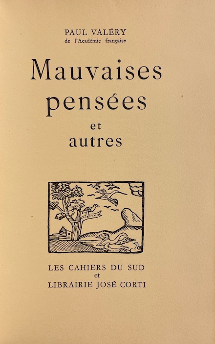VALERY (Paul) Mauvaises pensées et autres. [Paris], Les Cahiers du Sud et Librairie José Corti, 1941.
