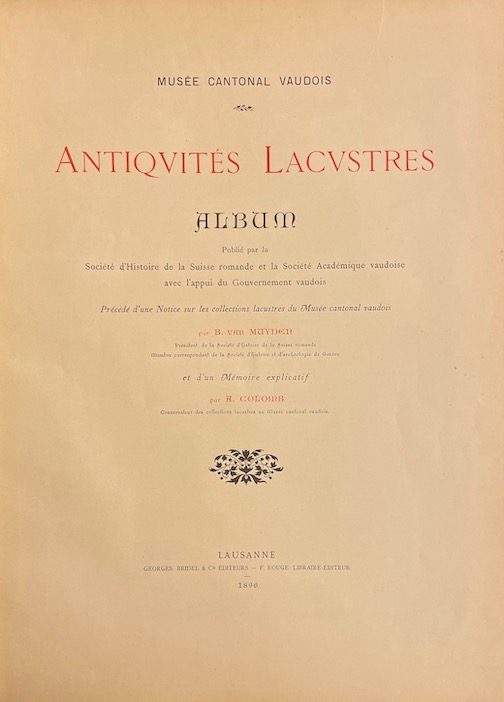 VAN MUYDEN (Berthold) et al. Antiquités lacustres. Lausanne, Georgesw Bridel & Cie – F. Rouge, 1896.