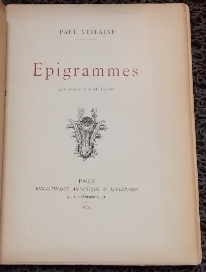 VERLAINE (Paul) Epigrammes. Paris, Bibliothèque artistique et littéraire, 1894.