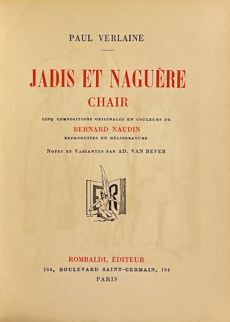 VERLAINE (Paul) Jadis et Naguère. [suivi de] Chair. Paris, Rombaldi, 1936.