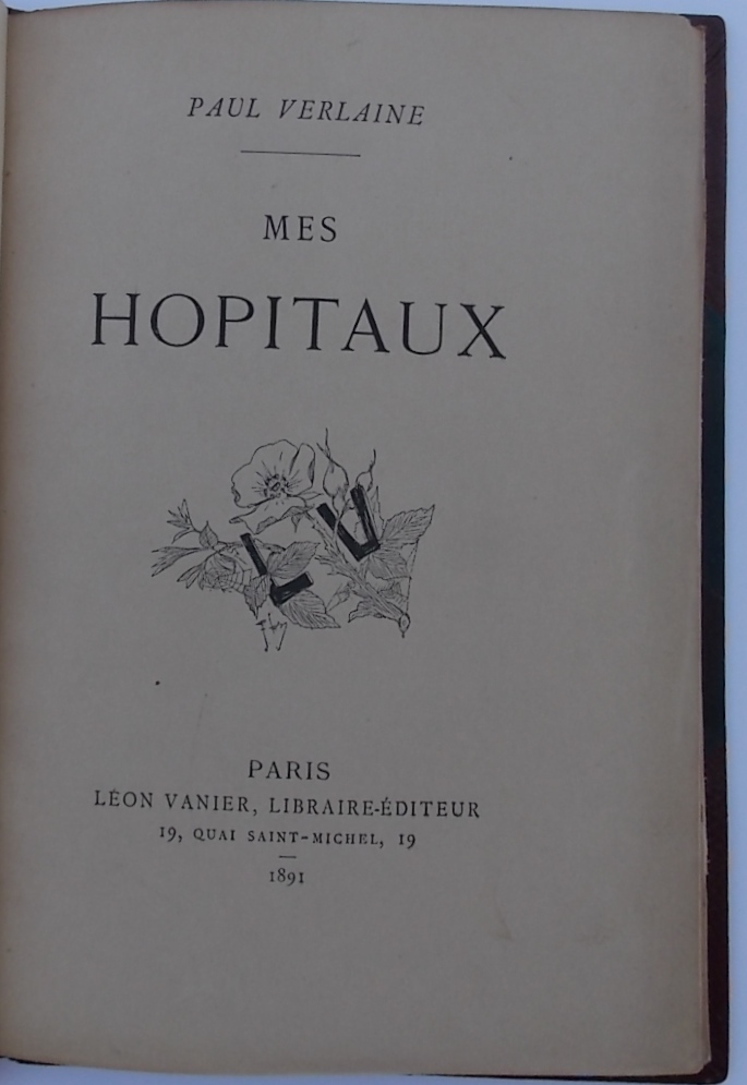 VERLAINE (Paul) Mes hôpitaux. Paris, Léon Vanier, 1891.