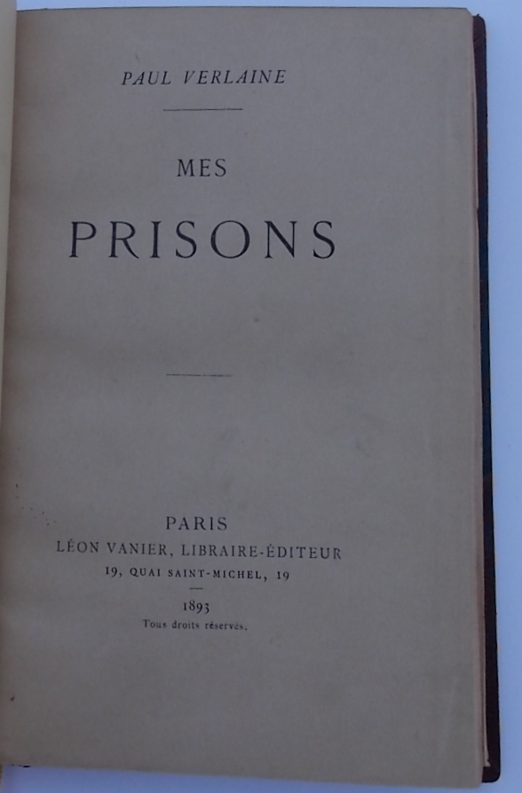 VERLAINE (Paul) Mes prisons. Paris, Léon Vanier, 1893.