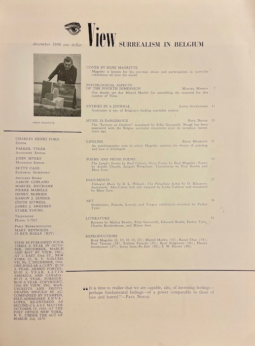 VIEW THE MODERN MAGAZINE [Revue] Surrealism in Belgium. New York, Charles Henry Ford editor, 1946.