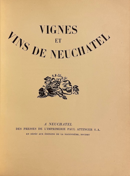 vignes Vignes et vins de Neuchâtel. Neuchâtel, Paul Attinger, 1935.