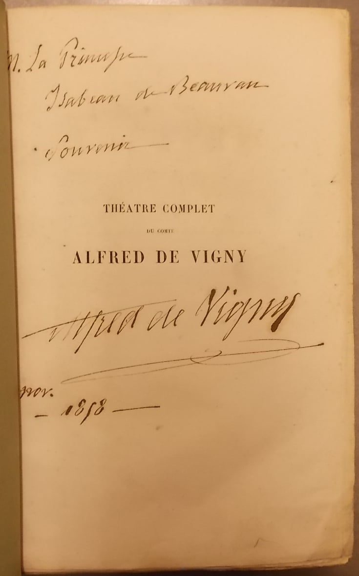 Exemplaire enrichi d’un envoi autographe signé de l’auteur à la Princesse Isabeau de Beauvau daté de novembre 1858. Dans une reliure postérieure, parfaitement établie signée Pierre-Lucien Martin. Ex-libris sur contreplat.