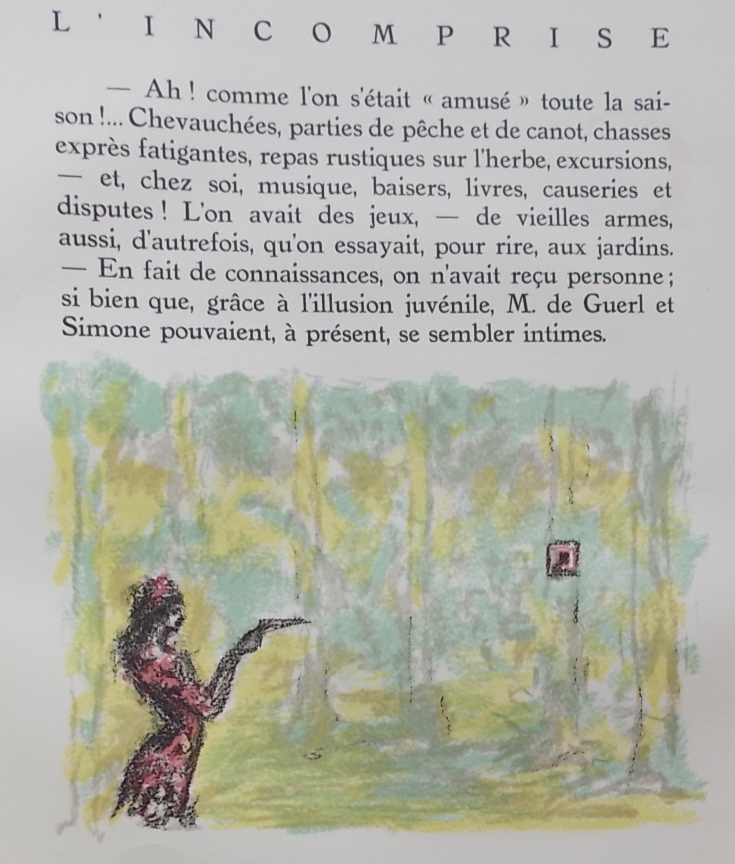 Edition illustrée de 41 lithographies en couleurs d’Edouard Goerg. Tirage limité à 115 exemplaires numérotés sur vélin pur fil à la forme de Lana. Celui-ci un des 15 exemplaires comprenant une suite en état définitif et une suite sur pelure. Enrichi d’une eau-forte originale en noir de l’artiste.