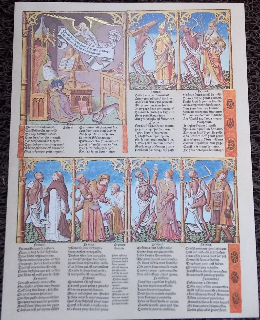 Edition numérotée sur vélin de Lana. Ouvrage enluminé et calligraphié en couleurs par Guignard. Le second volume est en fait une boite contenant une étude originale de Louis-Robert Plazolles intitulée « Villon et son temps » et divers documents reproduits en facsimilé (un plan de Paris en couleurs datant de 1552 – Une danse macabre en couleurs – Dessins et bois gravés – Pièces d’archives – jeu de cartes). Bel ensemble.