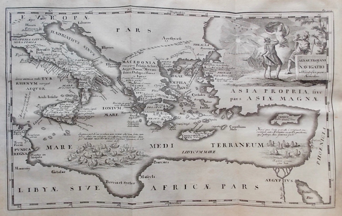 Belle édition latine reproduite sur l’édition de 1717. Les volumes comprennent Les Bucoliques, Les Géorgiques, l’Énéide, Culex, Ciris et le Catalepton. Illustré de bandeaux gravés par Antonio Visentini. Au tout début de l’Énéide se trouve une belle carte au format 27×41 cm, représentant le voyage de Troie à Rome. Commentaires de Maurus Honoratus Servius, Junius Philargyrius, Pierius Valerianus, Joseph Juste Scaliger, Heinrich Lindenbrog et Pancratius Maaswick. En excellente condition.