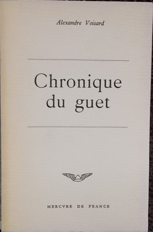 VOISARD (Alexandre) Chronique du guet. Paris, Mercure de France, 1961.