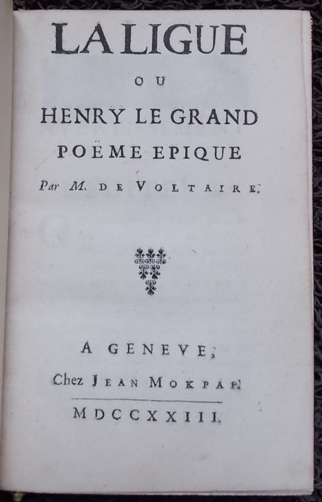 ![VOLTAIRE (François Marie Arouet) La Ligue, ou Henry Le Grand. Poëme épique. Genève, chez Jean Mokpap [Rouen, Viret], 1723.](https://cabinetamateur.ch/wp-content/uploads/2025/12/38893_1.jpg)