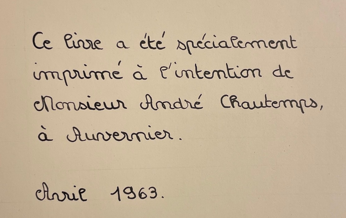 Edition originale tirée à 500 exemplaires. Celui-ci est un des 50 exemplaires de luxe nominatif numérotés en chiffres romains. Les textes et les linogravures de ce volume ont été réalisés par la classe de VIIe année du collège de Vauseyon en 1963. Contributions de Roger Robert, Eddy Bader, Jacques Ducommun, Etienne Robert-Grandpierre, Martial Kaehr, Jean-Pierre Mauley, Anne-Lise Clerc, Gérard Leuba, Alain Rognon, Serge Probst, Marie-Madeleine Cima, Françoise Henchoz, Pierre Quinche, Luciano Amantini, Gabriel Meyer.