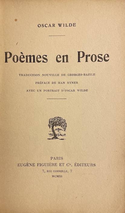 WILDE (Oscar) Poèmes en prose. Paris, Eugène Figuière et Cie, 1911.