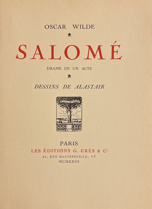 WILDE (Oscar) Salomé. Paris, Les Editions G. Crès et Cie, 1923.