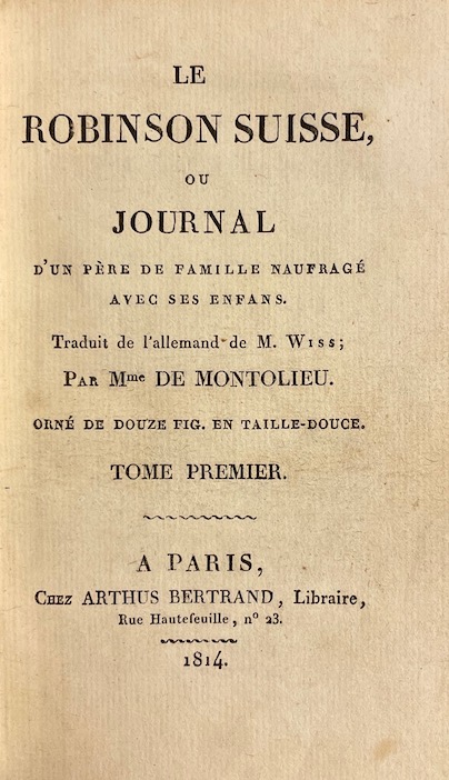 WYSS (Johann David Rudolf) Le Robinson suisse, ou journal d’un père naufragé avec ses enfants. Paris, Arthus Bertrand, 1814.