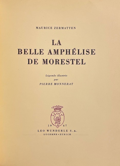 ZERMATTEN (Maurice) La belle Amphélise de Morestel. Lucerne et Zurich, Léo Wunderle, 1947.
