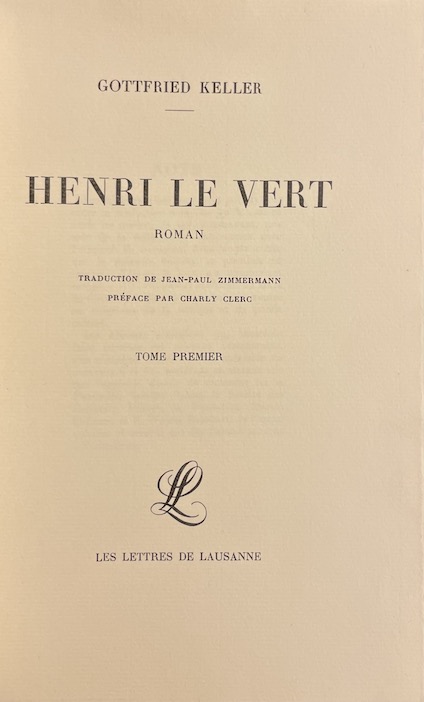 [ZIMMERMANN] – KELLER (Gottfried) Henri le Vert. Lausanne, Les Lettres de Lausanne, 1933.