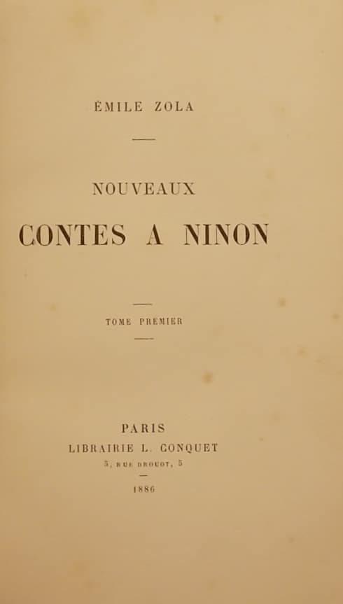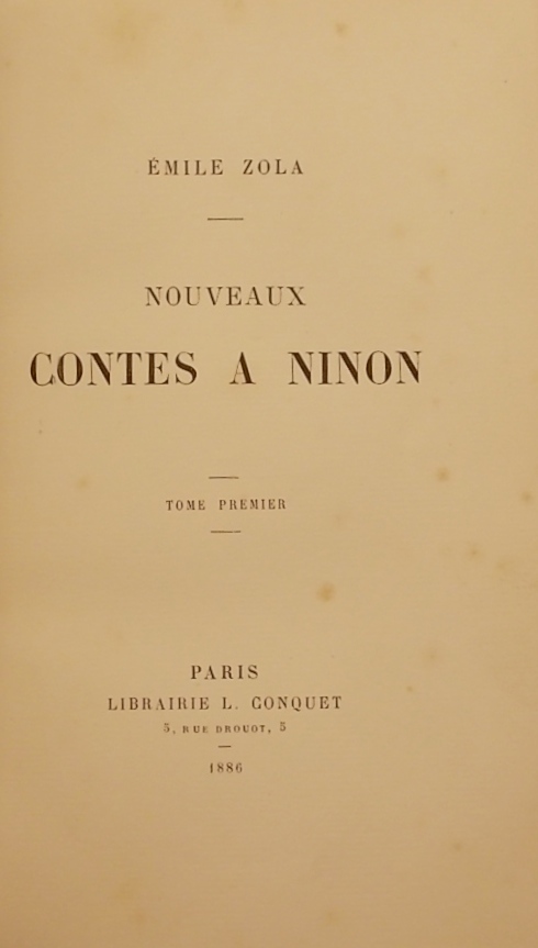 ZOLA (Emile) Nouveaux contes à Ninon. Paris, Librairie L. Conquet, 1886.