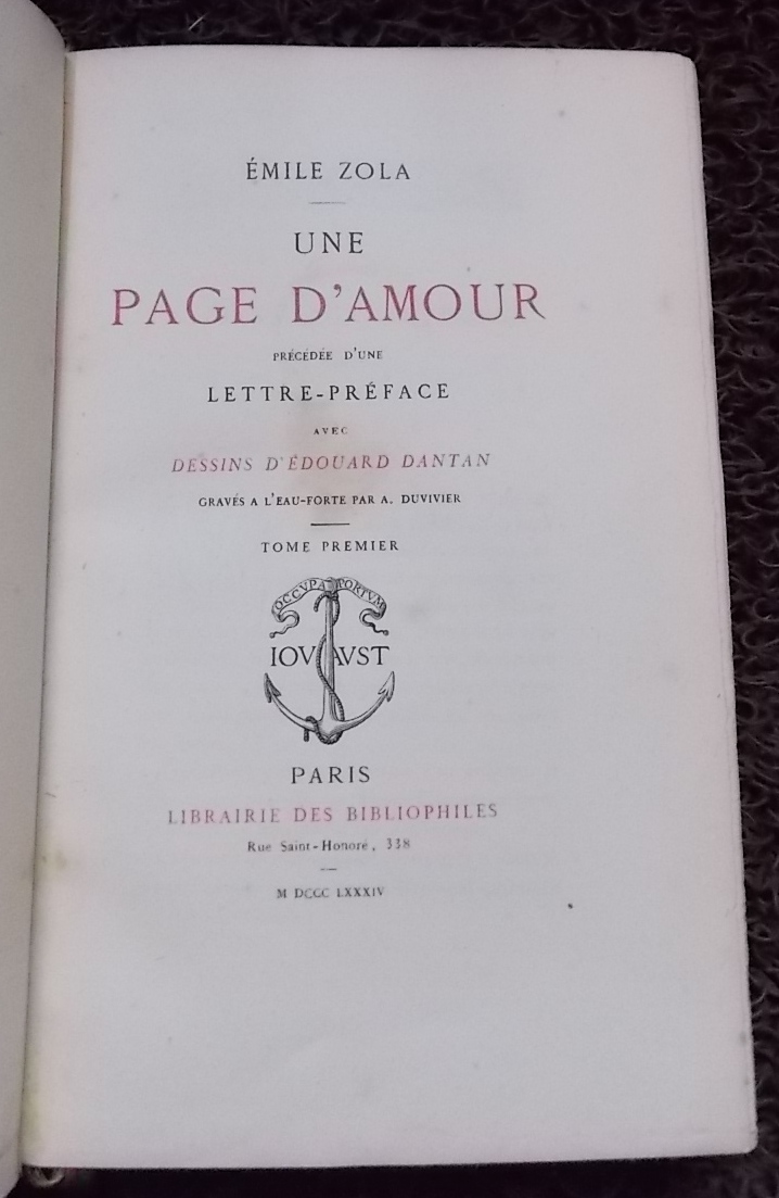 ZOLA (Emile) Une page d’amour. Paris, Jouaust – Librairie des Bibliophiles, 1884.